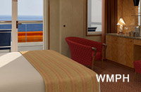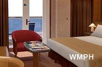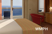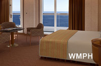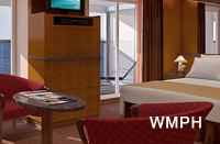 Occupancy: Up to 2 guests (some sleep 3) You are guaranteed at least a Category 11 mini-suite, which feature a private balcony, large sitting area, convertible sofa, one queen-size bed, walk-in closet with wall safe, private bathroom with ... Read More You are guaranteed at least a Category 11 mini-suite, which feature a private balcony, large sitting area, convertible sofa, one queen-size bed, walk-in closet with wall safe, private bathroom with Jacuzzi tub and shower, minibar, TV with VCR and first-run movies, and telephone. Please note your stateroom number will be given to you at check-in. Read Less Cabin Size: 185 sq ft Balcony Size: 40 - 85 sq ft