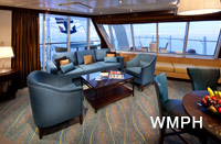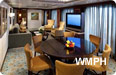 Occupancy: 4 The Owner's Panoramic Suite features a grand entrance that exposes lofty views two decks high. This single-floor suite with doorbell has a dining room with dry bar and entertainment center, ... Read More The Owner's Panoramic Suite features a grand entrance that exposes lofty views two decks high. This single-floor suite with doorbell has a dining room with dry bar and entertainment center, living room with sofa bed, and guest bath with shower. The master bedroom has a King size bed with Duxiana Mattress and sitting area, and a master bathroom with tub, shower, two sinks and bidet. The private balcony has a jacuzzi, seating area, dry bar, and dining area. Read Less Cabin Size: 1,076 sq ft Balcony Size: 161 sq ft
