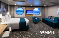 Occupancy: 4 Enjoy sweeping ocean views and AquaTheater performances right from your suite. Royal King bed (can convert to two twin beds). One sofa bed in staterooms with up to 4 guests. ... Read More Enjoy sweeping ocean views and AquaTheater performances right from your suite. Royal King bed (can convert to two twin beds). One sofa bed in staterooms with up to 4 guests. Read Less Cabin Size: 323 sq ft Balcony Size: 130 sq ft