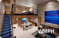 Occupancy: 4 Crown Loft Suites are two decks high staterooms and feature panoramic views. The master bedroom is on the second level and has a Royal King size bed and private bath. ... Read More Crown Loft Suites are two decks high staterooms and feature panoramic views. The master bedroom is on the second level and has a Royal King size bed and private bath. A second bath with shower is located on the main level. The private balcony includes chairs and a dining area with dry bar. The living room has a table/desk and a sofa that converts to a double bed. Read Less Cabin Size: 545 sq ft Balcony Size: 114 sq ft