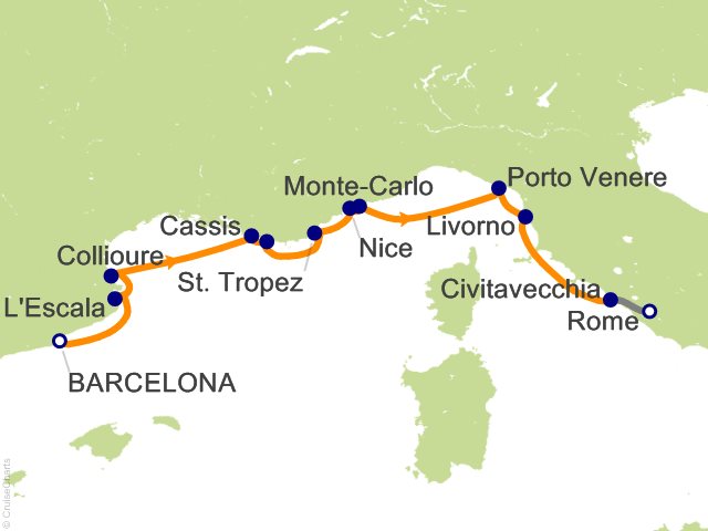 Your Signature Yacht Cruise concludes this morning in Civitavecchia, an ancient port dating back to the second century and serving as the gateway to Rome. Explore the timeless beauty of the 'Eternal City', where historic monuments and ornate churches sit alongside busy cafes and designer boutiques, and every corner tells a story of empires past. After savoring a final delightful breakfast onboard, it will be time to disembark and commence your onward journey or return home, carrying cherished memories with you. Please book your flight to depart out of Rome after 12 PM. Inclusions: Breakfast.; Notes: Spa treatments and services at additional cost. Daily activities may be subject to change; please consult your Daily Wonder for updates. All drinks onboard, including those stocked in your mini bar, are included, except for a very small number of rare, fine, and vintage wines, Champagnes, and spirits. Specialty restaurants require a reservation, enquire onboard. Experiences onboard the helicopters and submersible are at additional cost, subject to regulatory approval, availability, weight restrictions, medical approval, and weather conditions. Helicopter not operational in France. Submersible not operational in Europe. The itinerary is a guide only and may be amended for operational reasons. As such Scenic cannot guarantee the voyage will operate unaltered from the itinerary stated above. ... Read More