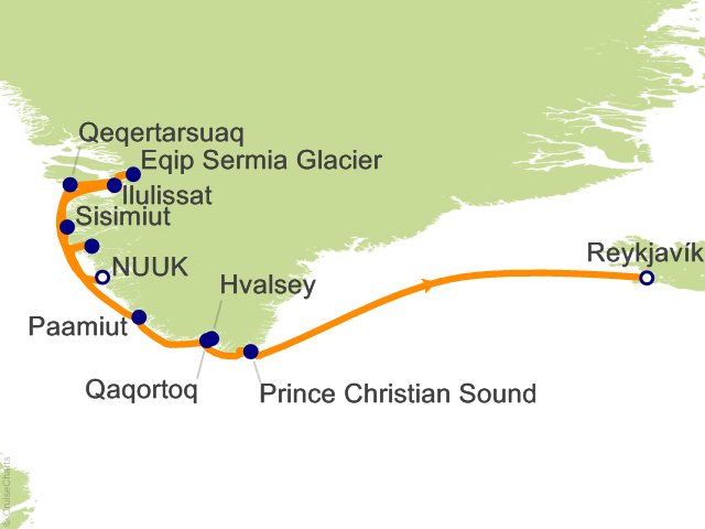 From Nuuk, (Greenland) to Reykjavik, (Iceland)