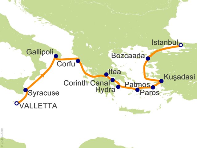 From Valletta, (Malta) to Istanbul, (Turkey)