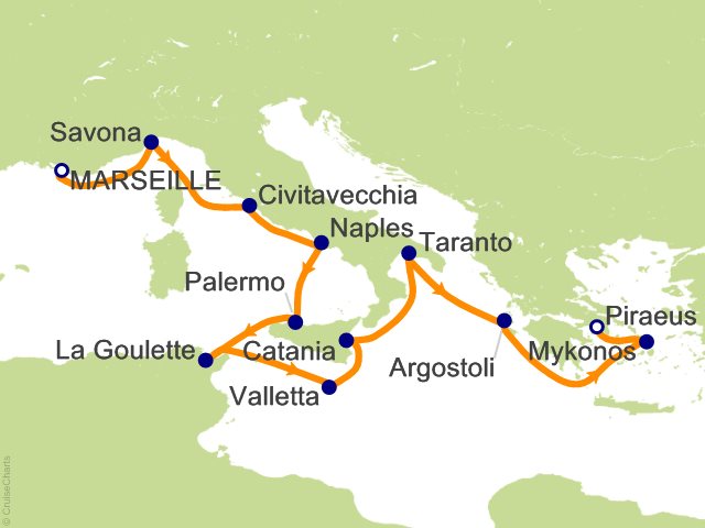 From Marseille, (France) to Athens (Port of Piraeus), (Greece)
