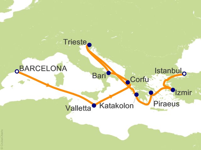 From Barcelona, (Spain) to Istanbul, (Turkey)