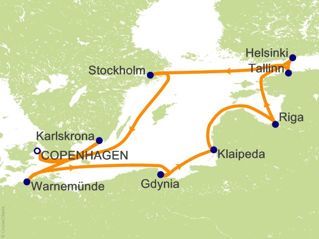 From Copenhagen, (Denmark) to Copenhagen, (Denmark)