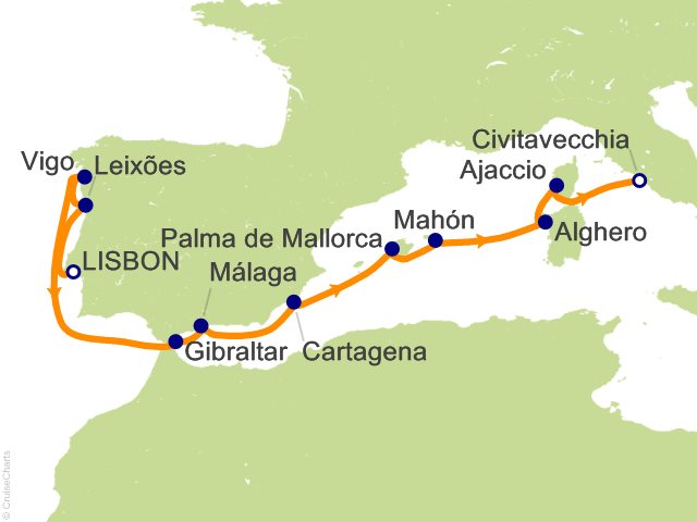 12 Night Lisbon to Civitavecchia Cruise