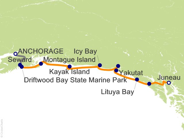 After your included transfer from Anchorage, welcome to Seward, a historic gateway to Alaska's coastal treasures. After a safety briefing, enjoy drinks and dinner as the vessel sets sail around 9 PM. We'll be taking mostly overnight crossings during this journey to allow for maximizing daylight for exploration and navigating open water while guests are in their guest rooms. Meals included: dinner ... Read More