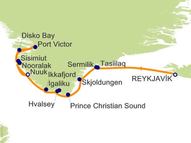 From Reykjavik, (Iceland) to Nuuk, (Greenland)