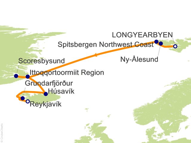 From Longyearbyen, (Norway) to Reykjavik, (Iceland)