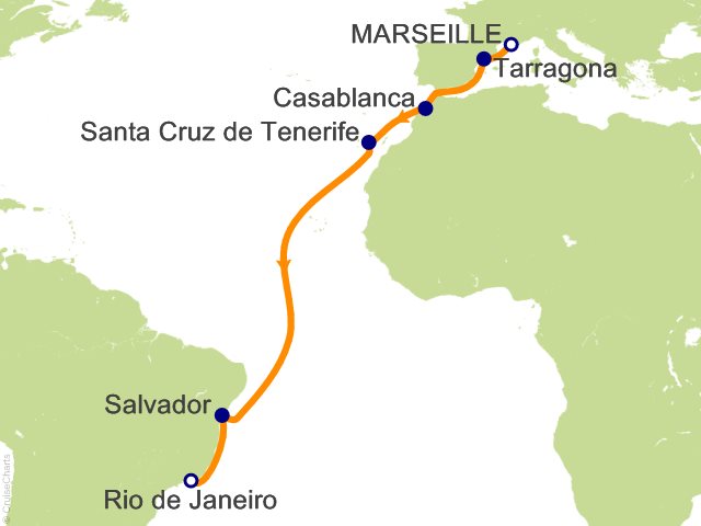 From Marseille, (France) to Rio de Janeiro, (Brazil)