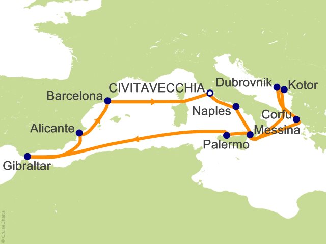 From Civitavecchia (Rome), (Italy) to Civitavecchia (Rome), (Italy)
