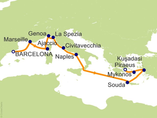 From Barcelona, (Spain) to Athens (Port of Piraeus), (Greece)