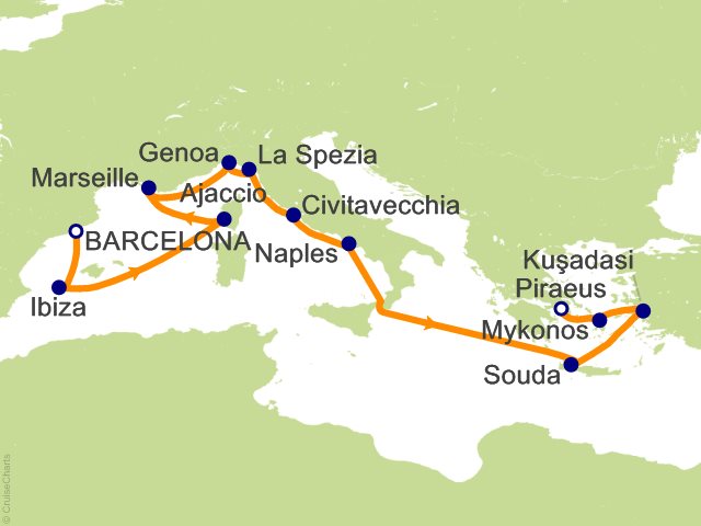 From Barcelona, (Spain) to Athens (Port of Piraeus), (Greece)