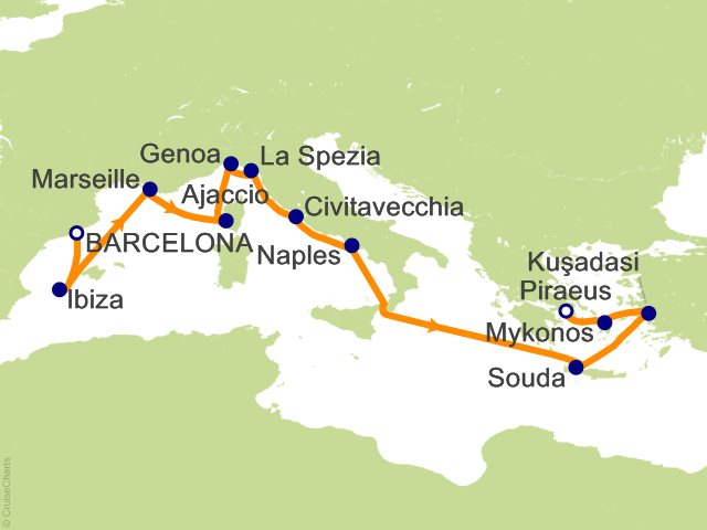From Barcelona, (Spain) to Athens (Port of Piraeus), (Greece)