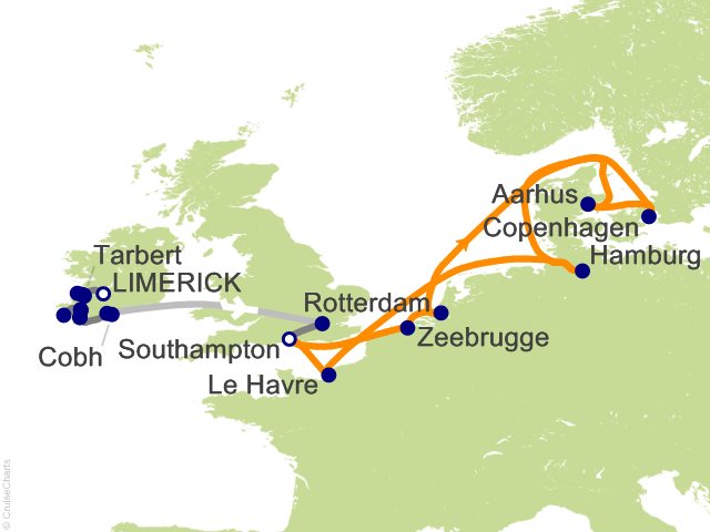 After breakfast, transfer to Cork Airport for your flight to London (Heathrow). Upon arrival, transfer to Southampton to embark your ship. (B)