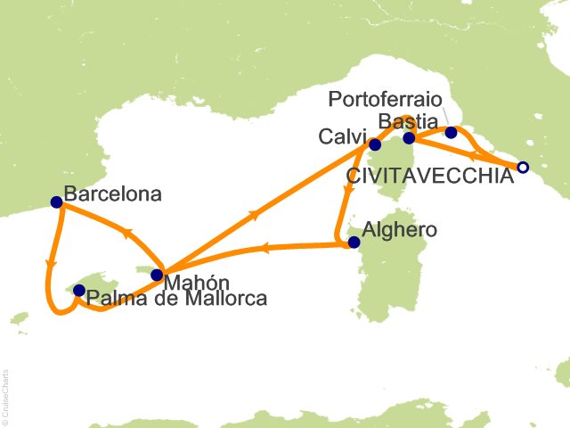 From Civitavecchia (Rome), (Italy) to Civitavecchia (Rome), (Italy)