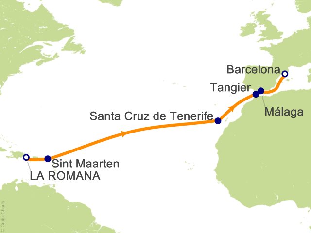 From La Romana, (Dominican Republic) to Barcelona, (Spain)