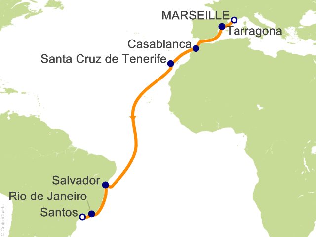 From Marseille, (France) to Santos (Sao Paulo), (Brazil)