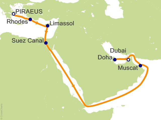 From Athens (Port of Piraeus), (Greece) to Dubai, (United Arab Emirates)