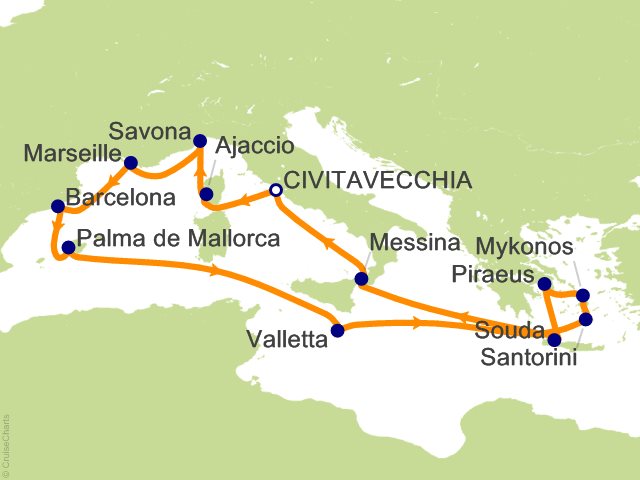 From Civitavecchia (Rome), (Italy) to Civitavecchia (Rome), (Italy)