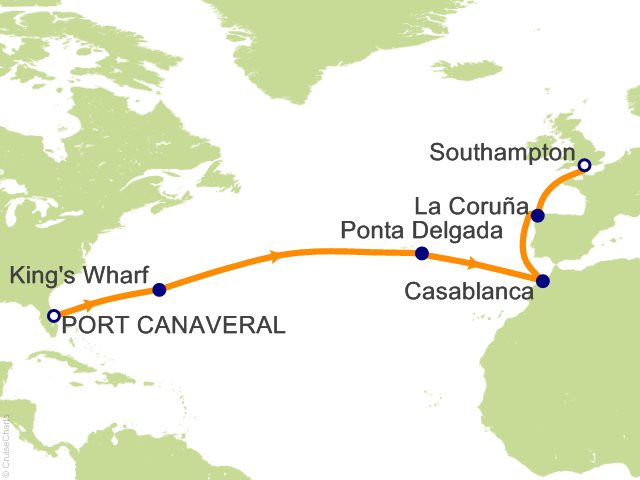 From Port Canaveral, Florida, (United States) to Southampton, (United Kingdom)