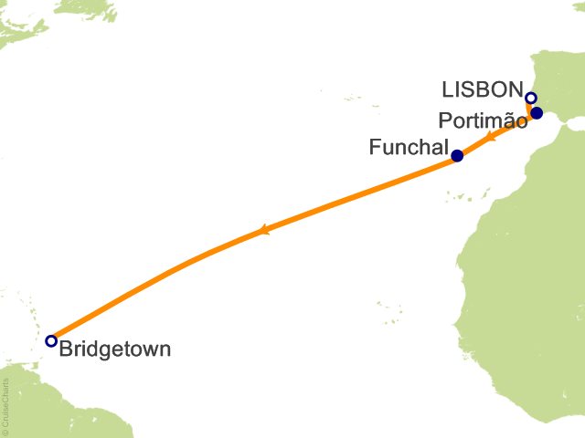 From Lisbon, (Portugal) to Bridgetown, (Barbados)