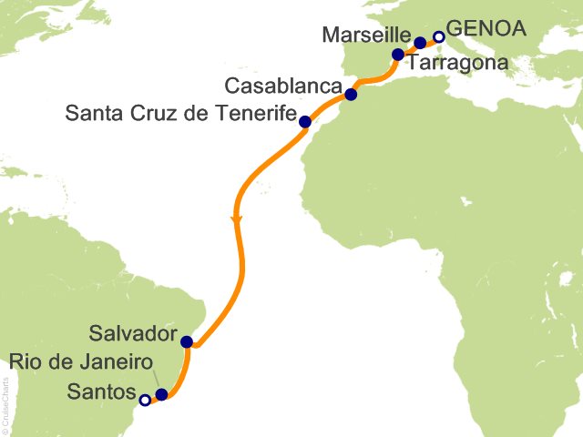 From Genoa, (Italy) to Santos (Sao Paulo), (Brazil)