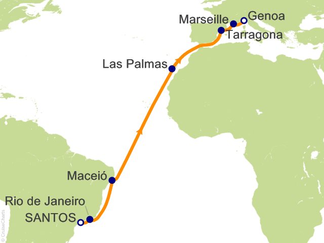 From Santos (Sao Paulo), (Brazil) to Genoa, (Italy)