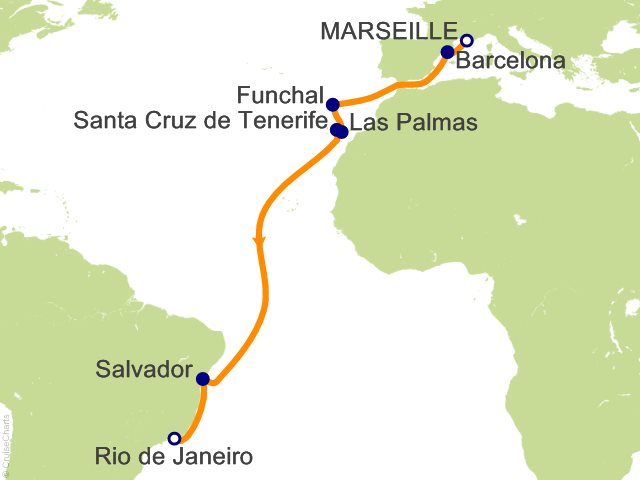 From Marseille, (France) to Rio de Janeiro, (Brazil)