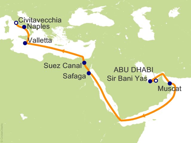 From Abu Dhabi, (United Arab Emirates) to Civitavecchia (Rome), (Italy)