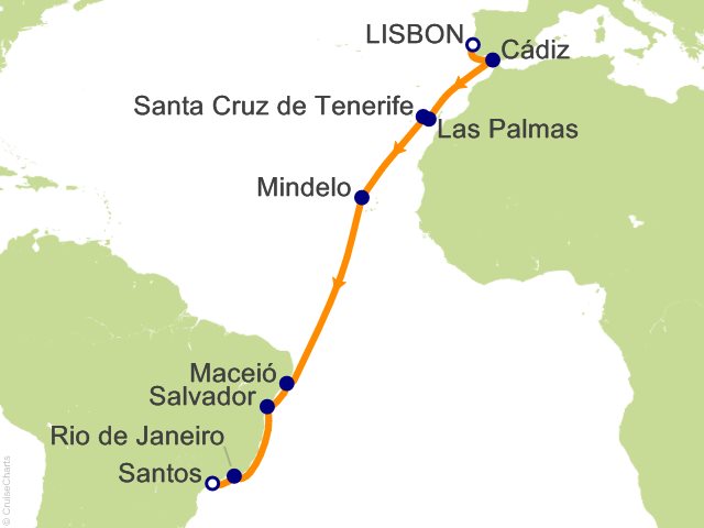 From Lisbon, (Portugal) to Santos (Sao Paulo), (Brazil)