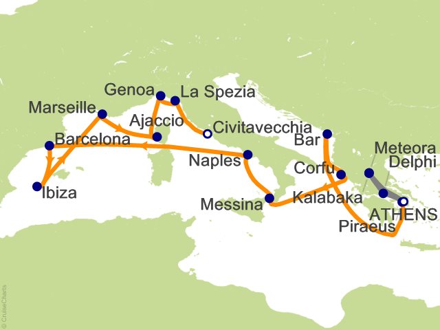 From Athens (Port of Piraeus), (Greece) to Civitavecchia (Rome), (Italy)