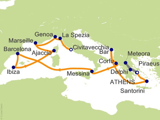 From Athens (Port of Piraeus), (Greece) to Civitavecchia (Rome), (Italy)