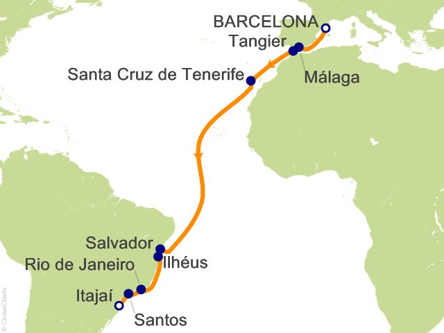 From Barcelona, (Spain) to Itajai, (Brazil)