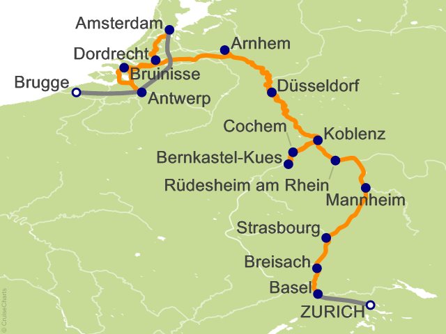 This morning, discover Rudesheim, a pretty town surrounded by steep vineyards that have been cultivating wine for more than two millennia. The charming town center is filled with half-timbered houses lining cobbled streets, quaint shops selling trinkets, as well as a smattering of wine taverns and open-air beer gardens. ... Read More