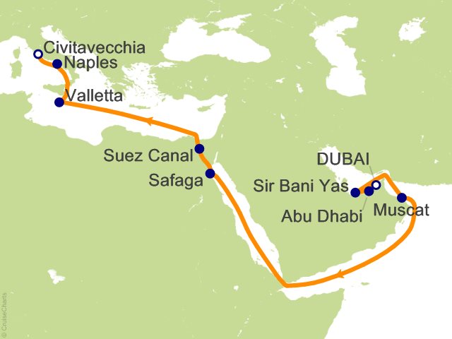 From Dubai, (United Arab Emirates) to Civitavecchia (Rome), (Italy)
