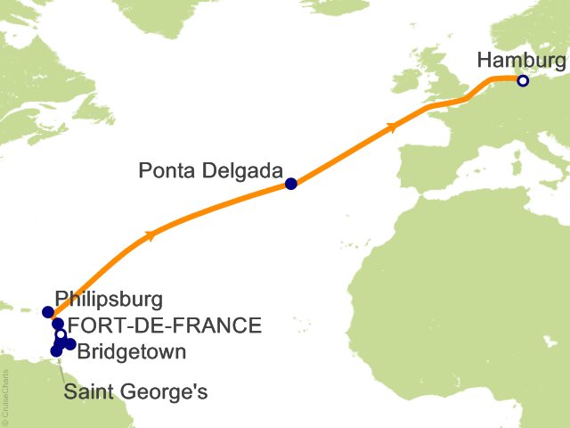 From Fort de France, (Martinique) to Hamburg, (Germany)