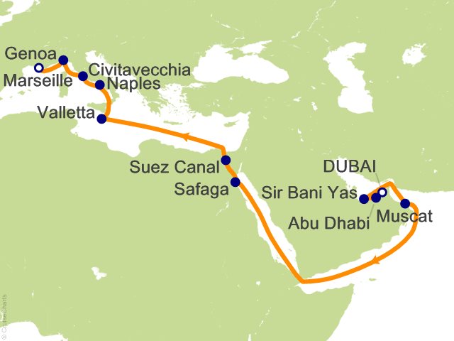 From Dubai, (United Arab Emirates) to Marseille, (France)