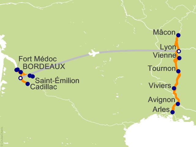 Board an included flight from Bordeaux to Lyon where you will be welcomed onboard by the friendly crew of the Scenic Sapphire.