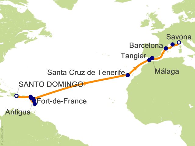 From Santo Domingo, (Dominican Republic) to Savona, (Italy)