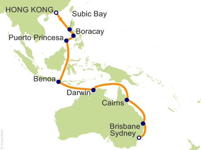 From Hong Kong, (Hong Kong) to Sydney, New South Wales, (Australia)
