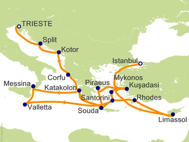 From Trieste, (Italy) to Istanbul, (Turkey)