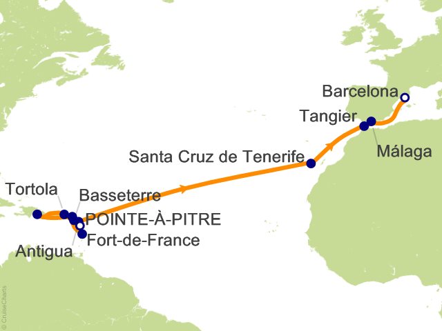 From Pointe-a-Pitre, (Guadaloupe) to Barcelona, (Spain)
