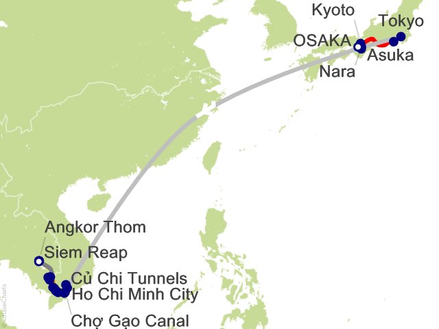 Say goodbye to the land of the rising sun and fly to Ho Chi Minh City, Vietnam. On arrival, you will be met by your Emerald Cruises representative and transferred to your hotel, situated in downtown District 1, for a two-night stay. After checking in, you will be free to explore the city before meeting your tour director for your welcome briefing and dinner at a local restaurant. ... Read More