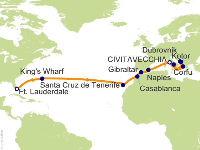 From Civitavecchia (Rome), (Italy) to Fort Lauderdale, Florida, (United States)