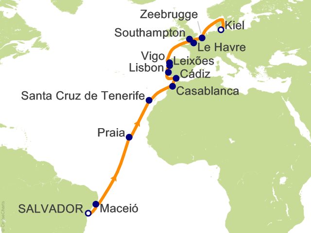 From Salvador de Bahia, (Brazil) to Kiel, (Germany)