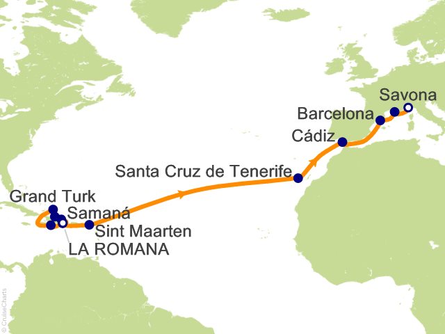 From La Romana, (Dominican Republic) to Savona, (Italy)