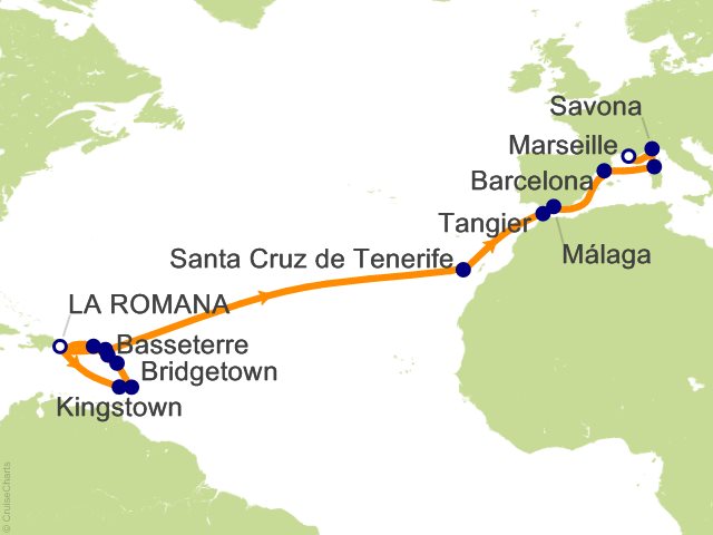 From La Romana, (Dominican Republic) to Marseille, (France)