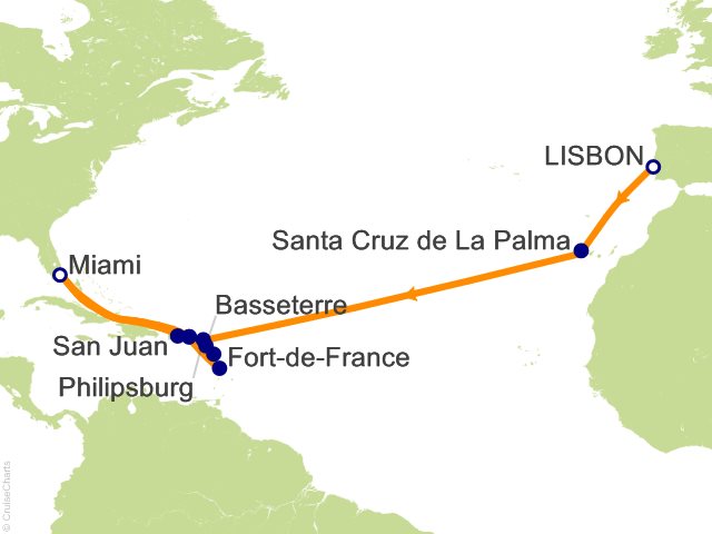 From Lisbon, (Portugal) to Miami, Florida, (United States)